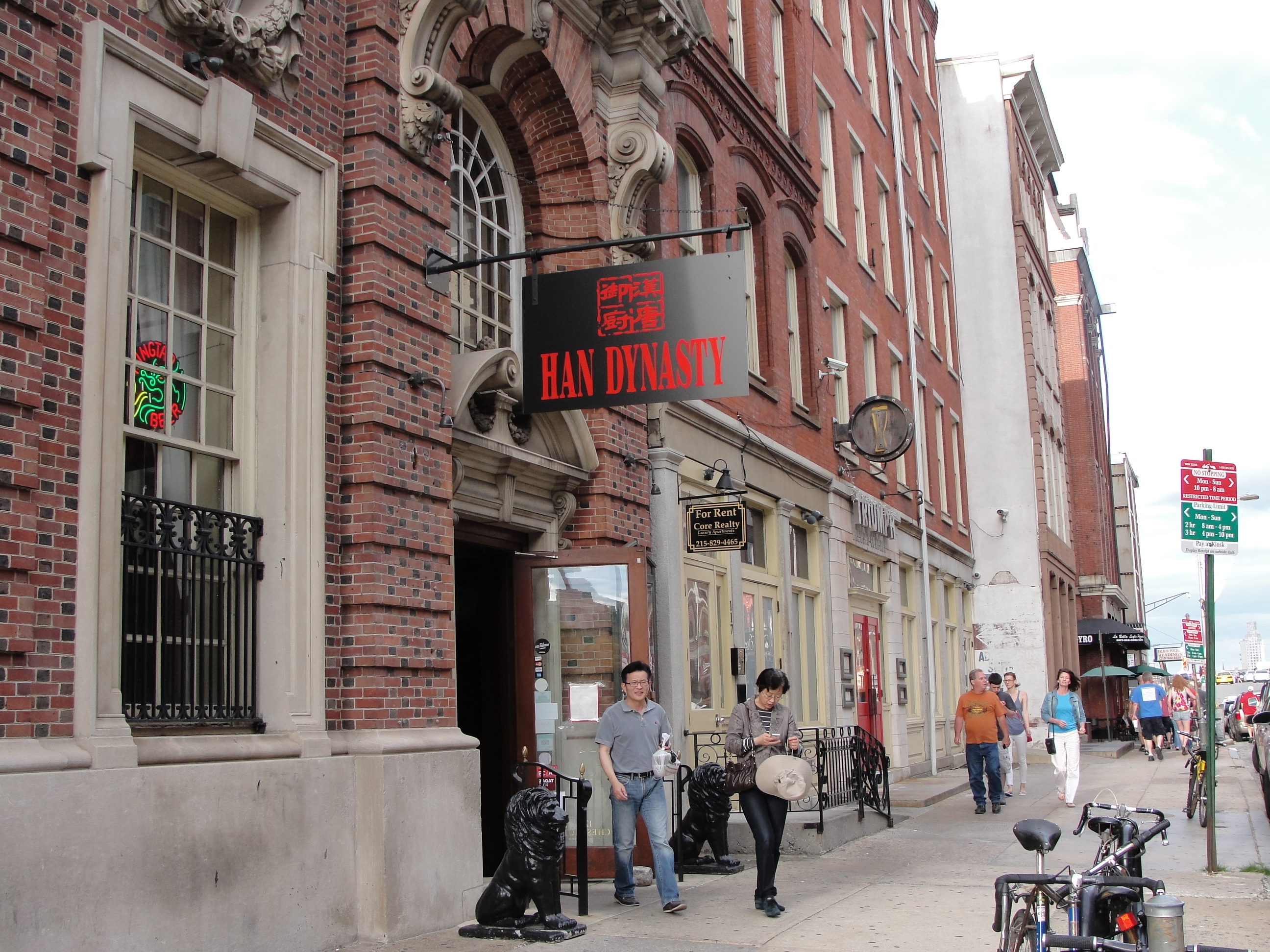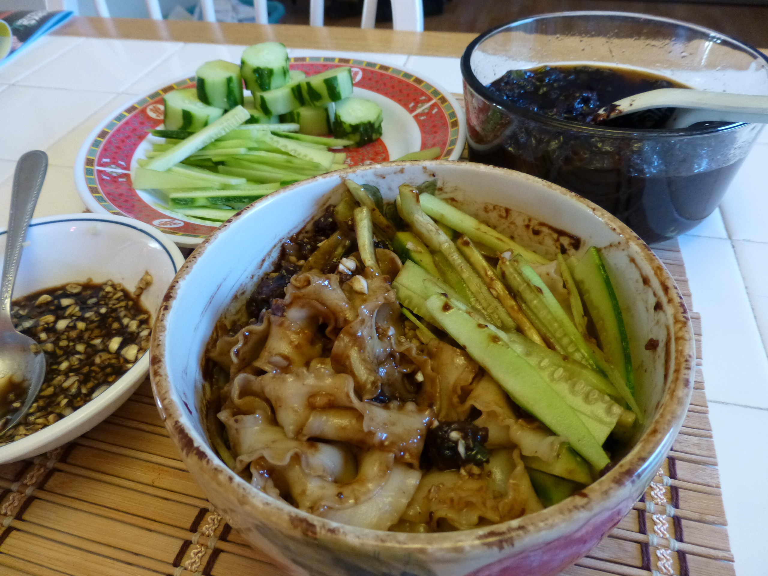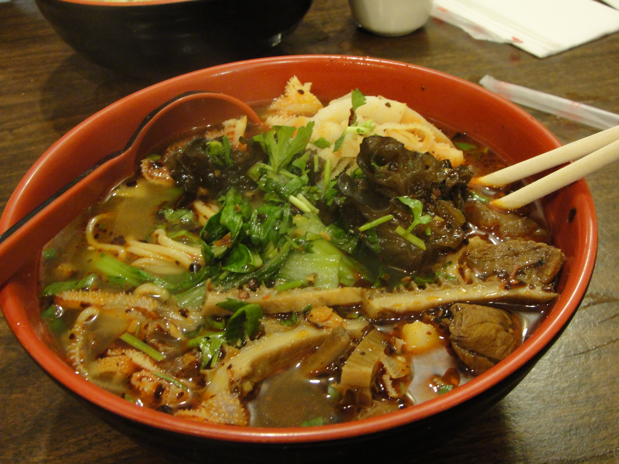 晚餐安排吃牛肉面,地点在国民党中央党部大楼左侧几十米远。此面店,在台北很有名,不过店面很小,只有10个座位,吃面要排队等候。国民党中央党部大楼门前,堆了几层柜马,防止学生冲击。
