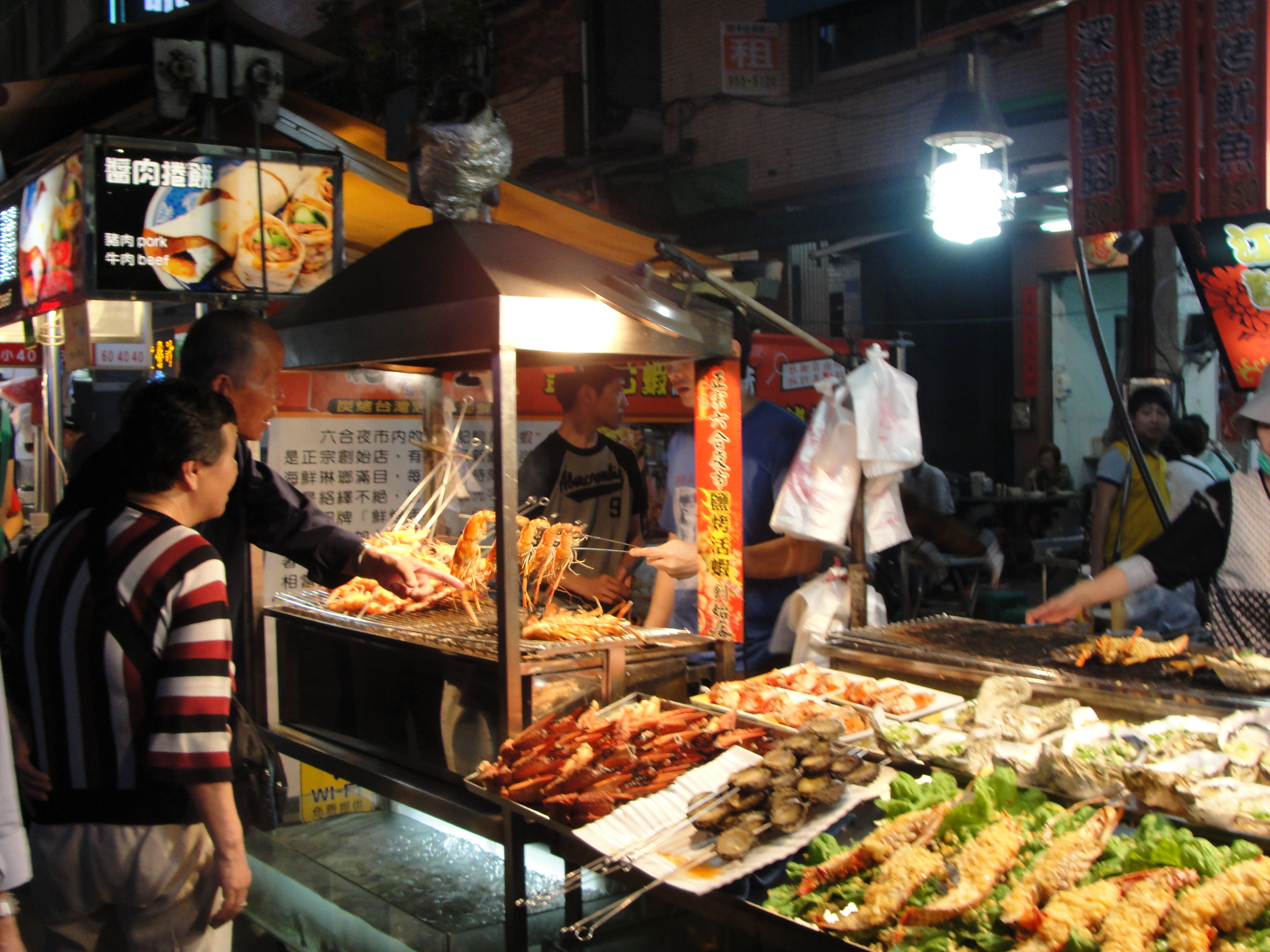 6时车达终点站——高雄左营。凭车票在车站大厅内指定餐厅用餐。餐毕,旅行社派车来接,向市区进发。到旅馆前,司机买票让我们夜游爱河(20分钟),之后又送我们到台湾最大的小吃一条街——“六合小吃街”,我们在街上走了一个来回。小楼排队买了一串杭州臭豆腐。
