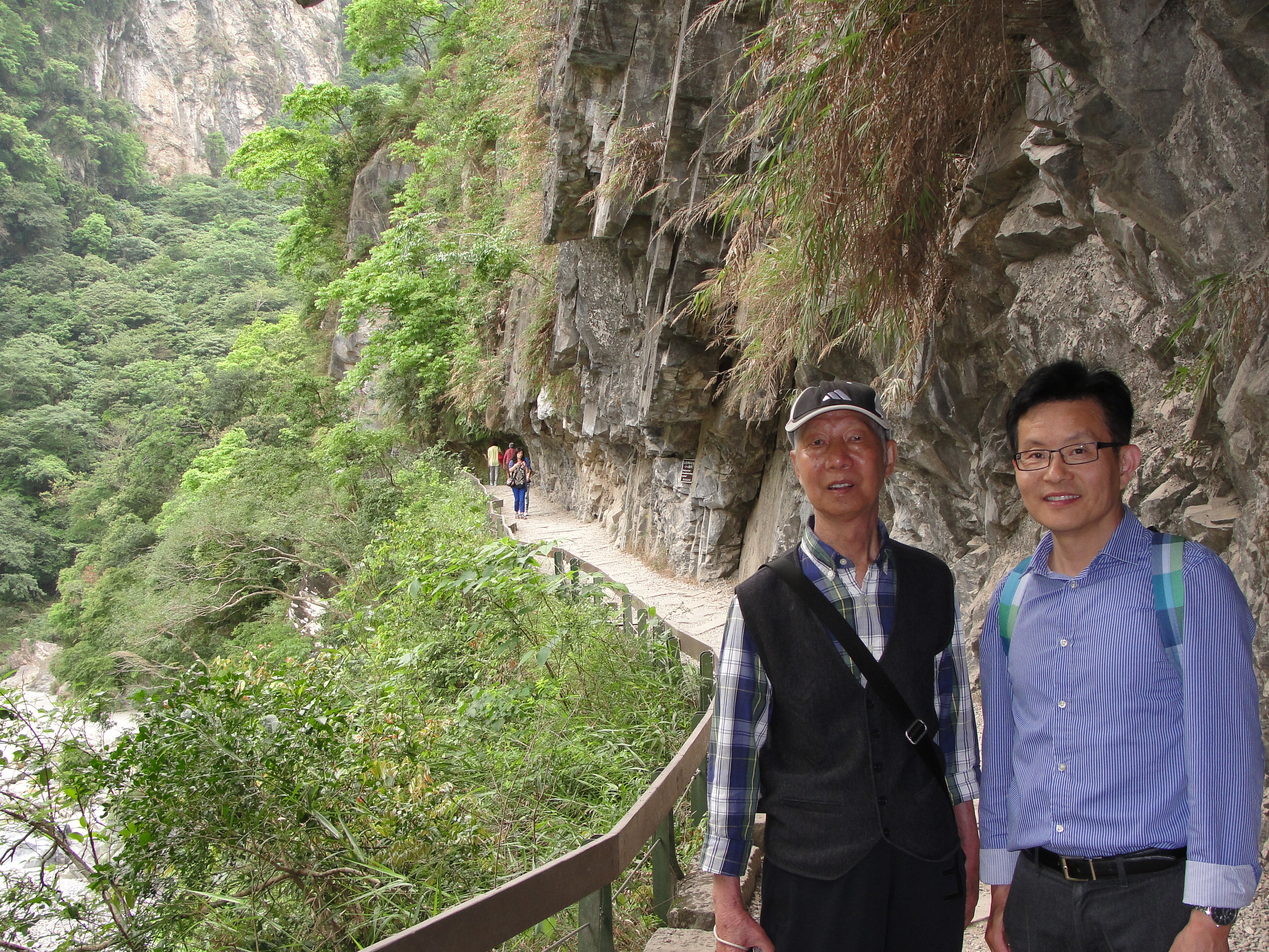 我们参观太鲁阁,就是沿着这条公路步行,观看两边风光。其中一段路(约100米)因经常有山石滚落,砸伤边游客,因此要求戴上安全帽,沿山汫一侧迅速通过。