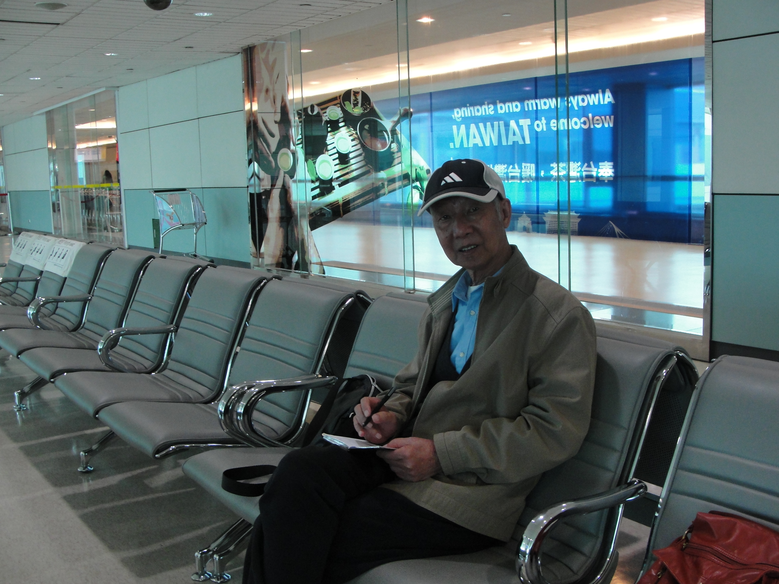 4月9日凌晨两点到达桃园机场。下机后,按指示牌向乘出租车的大门走去。大厅里空荡荡,突然出现一位男士,问我们是否要车。他用手机联系。我们一出机场门口,就有一辆出租车在等待着。