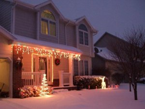 写下这个标题,好像有点不想过圣诞节,其实不管你心情如何,时间不以人的意志,一步一个脚印的就走到了年末,3天后就是圣诞节了。按照我们这里的习惯,过了感恩节趁老天还没下雪,气温还不算太低的时候就开始室外的彩灯装饰。我们在感恩节期间外出旅游了7天,那天晚上回到家发现我们的街坊邻居都亮了灯,而老天爷也迫不及待地下了一场雪,显然我们错过了最好时机。等周末气温回升了一些的时候,赶紧装了我家的圣诞彩灯,可惜地已经上冻了,费了好大的劲才把一些柱子插到地里。