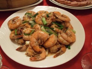 朋友Z 家带来的油爆大虾 朋友 L家做的中式火腿肉