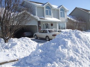 事情是这样的,从上周六到昨天,我们这连续下了2场大雪,累积有10多英寸。昨天的一场雪从上午7时开始急降,不一会儿大地一片银装素裹,有越下越大的趋势,中午12时,楼同学的公司总部通知办公室关闭,员工可以提前下班,当地中小学也提前放学。下午1时左右楼同学从远在30英里外的公司撤退安全回到家里,这时雪奇迹般的停了,2人花了不少时间奋力将自家门前的车道和人行道的积雪清了干净,这时候快3点了,估计市政将市内外道路也清的差不多了,想到家里豆浆吃完了,冰箱里的储备也不多了,仗着有一部四轮驱动车壮胆,就上路前往市里东边的大型超市购物。