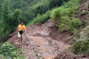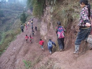 11月下旬,又接信天通报:当地连日下雨,山区道路泥泞黏滑,车子无法运送建材到晏家林小学施工现场,致使建校施工最近进展缓慢以致停顿……
