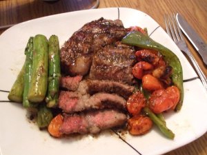 来到米国后渐渐受到米国牛排文化的熏陶,一家3口都爱上牛排。可惜我们这个玉米地的小城没有什么像样的牛排馆,平时也就到Applebee 打打牙祭,那里的新奥尔良风味的牛排还算可以,而且也不贵,当然不能与纽约的peter luger steak house 比啦。最近不知是否经济不景气还是什么别的原因,价格涨了不说,牛排的质量也下滑了,不嫩,筋筋吊吊的也多,厨师火候掌握得也不到位,我们点的 Medium —五成熟,结果端出了致少是Medium Well–七,八成熟,我们觉得有点老了。
