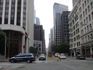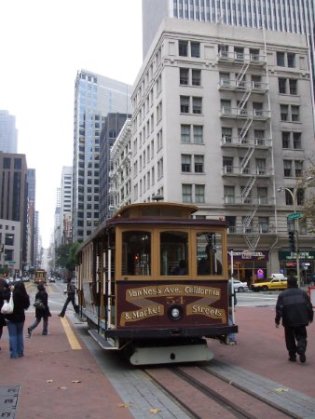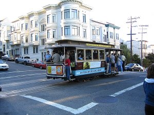旧金山有一种非常独特的交通工具—cable car, 顾名思义就是缆车。建于1873年的缆车是当时应付旧金山陡峭道路的最好交通工具,它的创建据说是来源于一次事故:一次有人赶马上坡,由于坡度陡峭,人毁车翻。目睹惨剧的安德鲁发奋创建了这种有轨缆车。 现在当然已被现代化交通工具所替代,全城仅留有3条线的cable car 作为观光旅游用,成为了最受游人欢迎的观光项目之一。有人说,到旧金山不坐缆车,就象到巴黎不去卢浮宫,到北京不爬长城一样使人遗憾。