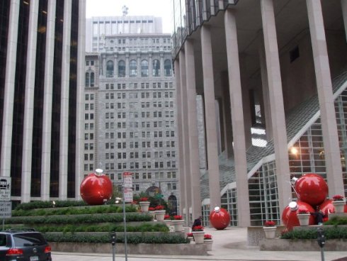 在广场的中心有个郁郁葱葱的小花园,种着棕榈、紫杉和鲜花,可供游人休息,也常举行画展、跳蚤市场等各项活动。我们去的这天正好是感恩节后的第一天,在米国被称为“黑色礼拜五”,是圣诞节促销的第一天,很多商品是“跳楼价”,吸引着无数人疯狂大抢购,我们观光不忘购物,也在人流如织的Gap 店里抢购衣物数件。