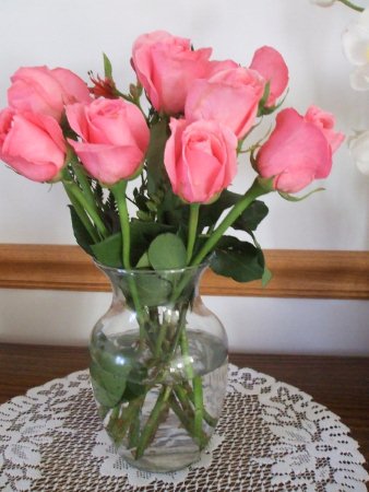 粉玫瑰放在床头柜上,每一早上醒来都有一份好心情。