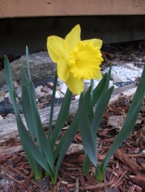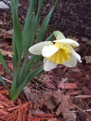 孤独的凌波仙子。可能是去年开春时气候反常,今年的水仙,郁金香类的花苞很少,有的只长叶子不见花苞。