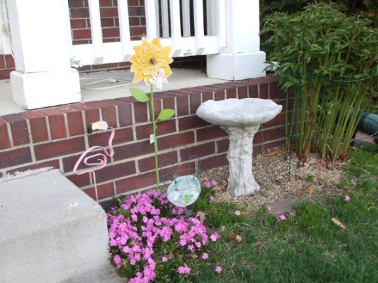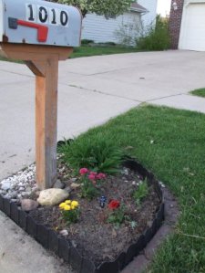 信箱下的mini 花圃拔掉了几年老的太阳花,换了3种颜色的小菊花,后面一丛是萱草(黄花菜)。