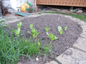 在东窗下的韭菜园里种了几棵罗马生菜,最里边还埋了几瓣大蒜头,这里还准备再种2棵辣椒。