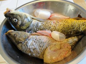 这是清理干净的鱼,好几年没有杀活鱼了,技术生疏了不少。