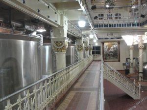 有点像我们糖厂,它也是按管道流程布置成为多层厂房。 这个是糖化罐群。