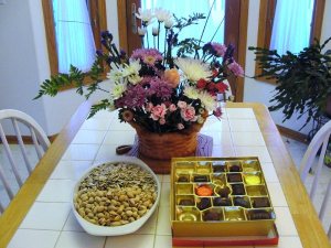 餐前小吃,开心果和瓜子,还有情人节的巧克力