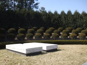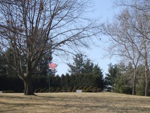 朴实无华的总统墓地。3月的Iowa, 天气尚凉,草地还没苏醒,只有身后的松柏一年四季常青。