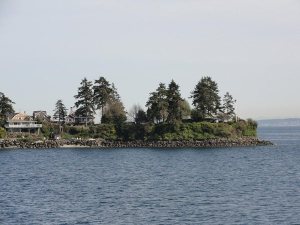 海湾里风很大,但油轮很稳,摆渡大约30分钟就可到达对面的bainbridge 岛。小岛一角,上面的“观海房”不知几钱一平米?