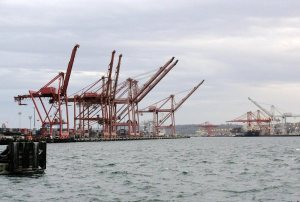 轮渡口不远处是集装箱货运码头,岸边堆积了很多从中国来的集装箱,有天津,mingyang,等等。轮渡口的另一边是旅游人气很旺的“滨江带”(waterfront), 有大量餐馆,游乐场等,夏天一边观海景,一边儿吹海风一定很爽。三月初春晚上还是有点凉的。本来我们要去57号码头的一家海鲜馆吃螃蟹的,每想到周末人特多,要等2小时,算了,先回旅馆去了。我们后3天住市中心6街的一家旅馆,到哪都很方便。就在旅馆里的餐馆吃了晚饭。我点了海鲜意大利面,楼同学点的巨难吃的French dip.