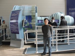 上午12点左右参观完微软公司后,按计划到波音参加一个名为“飞向未来”的波音之旅(Boeing tour)。波音公司位于西雅图北边大约30英里的Evertt 城,好些年前,就是现在的美国商业部长骆家辉任华盛顿州长时,波音公司因不满交税过多,与州里闹得很僵,而其他州则乘机给波音优惠条件,以吸引波音去安家落户。最后,波音公司的行政总部搬到了芝加哥最繁华的芝加哥河岸。现在留在西雅图的是波音飞机的总装配车间,和一些附属机构。