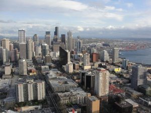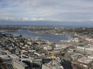 西雅图北面和华盛顿湖,据说比尔盖茨的豪宅就在华盛顿湖边somewhere.