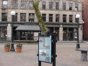 广场上有很多块图文并茂的讲解牌,还有地图,可以按图索骥的找到当时西雅图的第一家银行,第一家饭店,第一家百货公司等等。我想老美这种保护历史,爱护文物的做法是值得我们借鉴的。城市是要发展的,但是文物一但毁了就永远不能重建了。想当年梁思成力劝毛老人家保留老北京古城,在外围建设一个新北京,可惜啊…. 我现在完全理解梁先生看着老北京城墙被推土机推掉时,一个人抱头痛哭的心情….