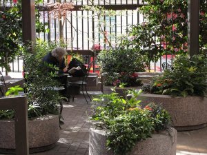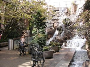 与消防队员雕塑马路一隔,有一个用铁栏杆围起来的小公园,叫瀑布园(waterfall Garden Park), 里面假山小桥流水,格局不大却颇有点苏州园林的味道。