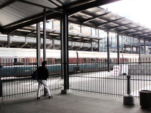 站台上一辆Amtrak 的列车正开往加利福尼亚州,途经俄勒冈州的波特兰市。上世纪50年代,美国由于汽车工业的发展和高速公路的进一步完善,汽车飞机替代了火车的旅途,客运列车严重受挫并不再发展。现在只有几个大城市之间有客运火车通行,还有的改成豪华观光火车,途经好几个国家公园,票价比飞机还贵。近2年美国遭受金融危机和环保问题,奥巴马政府又重新重视火车交通,特别是高速铁路,据说向中国取经,正可谓是30年河东,30年河西…