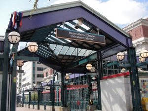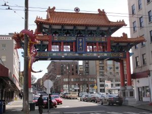 前面就到中国城的地段了,其实正确的名称应是中国城(Chinatown)/“国际区”(International district)。因为这个城区集中的不仅仅是中国人还有日本人,韩国人,越南,菲律宾等族裔,当然以中国人和商家为多。