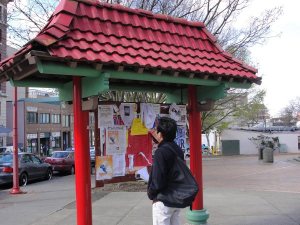 连布告栏都很有中国味道。西雅图的华人中出过一个名人,他就是中国功夫的代名词—李小龙!李小龙从旧金山来到西雅图的华盛顿大学求学,在这里的唐人街成立了“振藩国术馆”(李小龙原名李振藩)演绎着东方功夫的传奇,名震中外,还在西雅图成家生子。后来李小龙在香港去世后,家人选择将他葬在了西雅图的湖景墓园,30年后他儿子李国豪也葬在了那里。据说中国城建了李小龙博物馆,我们没找到。