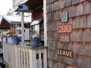 这是村口一家贴在外墙上的标语,也很有意思:要么客气点,要么就离开。这家大概有点厌烦了每天有住在陆地上的俗人来好奇的打探他们的湖上生活吧。好吧,再见了,船屋,后会有期。