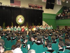 今年五月20-21日,当毕业骊歌就要唱起的时候,我们再一次回到这所古老的校园—-Washington University in St.louis ,和儿子还有上千个英气勃发的青年人,与他们的家人一道参加了他们大学毕业典礼,见证了他们人生中的又一重要里程碑。美国大学的毕业典礼通常有2个仪式,第一个是所在大学学院主持的(college) 叫Recognition Ceremony,主要是由院长宣布学生毕业,颁发毕业证书,然后分系有小型招待会。第二天,是大学( University) 主办的,全校毕业生(包括研究生)和全体亲朋好友参加,叫Commencement , 宣布毕业生正式获得学位,会后分各学院颁发学位证书。