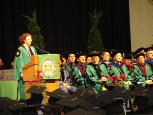 毕业生代表Jessica M. Cooper (人类学专业)作告别母校演说(seniors’ farewell)