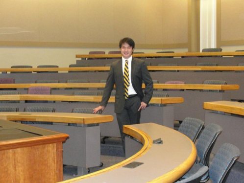 楼大学生在4年里除了主修经济学外,还副修了管理专业,因此在学校商学院也上了很多课。这是商学院走廊和教室。