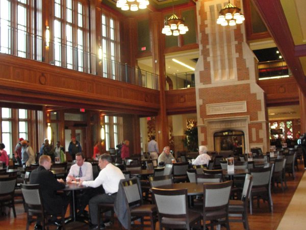 学校新改建和扩建的学生中心一角。在2008年的金融危机中,虽然华大是私立学校不像公立大学受州预算缩减影响这么大,但原来很多大企业的捐助不可避免的减少了。记得2009年初,校长给全体学生家长写了长长的一封信,说明了学校目前的财政情况,自减了年薪8%(原薪水70万美元)并停建了一些个项目。但保证有关学生的一律不受影响,号召家长们能一如继往的给与学校资金的支持,结果今年初给家长们发来了2009年度捐赠简报,在不景气的一年里,学校收到的各界捐款创了新高,其中包括企业,校友,家长,朋友的募捐等等。