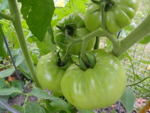 今年美国中西部还算风调雨顺,六月雨水很多,省了不少水费和人力,各类蔬菜都长得枝叶繁茂的,本来在开花结果之时应及时补充些磷,钾含量高的肥料,只是老天几乎晴不了2天就是一场小雨,竟找不出时机来上肥,好在进人7月后,老天开始放晴气温也随之升高,马上配了肥料给庄稼们补了补,现在看来还不太晚,收成应该还是不错的。
