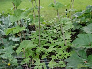 老菜农也会犯错误,买来了要爬藤的四季豆种子,而且发芽率也低,接着又补种了前年的老种子(不爬藤),结果出现了这种高低不等的局面。