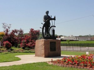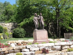 在小镇的东头有一坐小山包,山脚下的雕像是《汤姆.索亚历险记和 《哈克贝里·费恩历险记,1885》中的两个少年Tom and Hueklberry