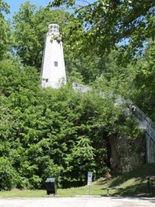 山顶上有一个白色的航标灯,为密西西比河上的船只引路
