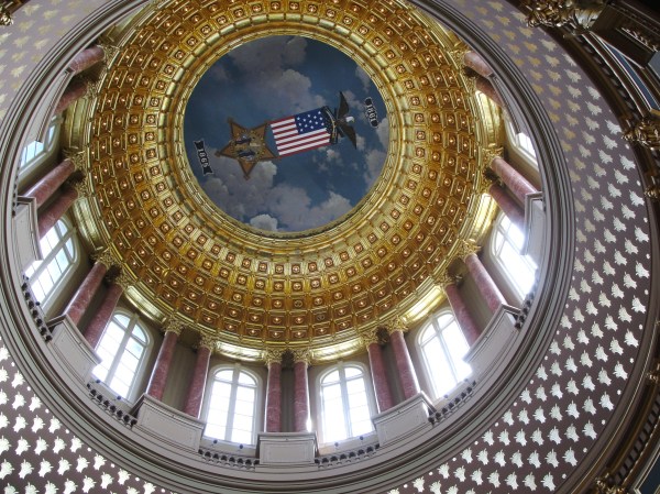 金顶上的图案是为纪念第一次世界大战结束后归来的Iowa 士兵而作。