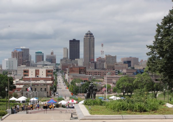 从州府大楼正门前看州府Des Moines 城市天际线