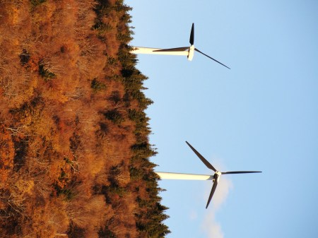 路上看到这个佛蒙特绿山能源公司的风力发电机,夕阳之下非常挺拔。