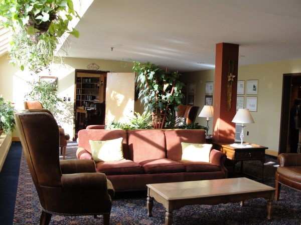 靠山坡一侧是度假山庄的主楼,欧式奥地利风格。客房价格不菲,一夜200-400美元,在美国相当于4星级的宾馆,而且很难定到,在旺季时要提前几个月预订。