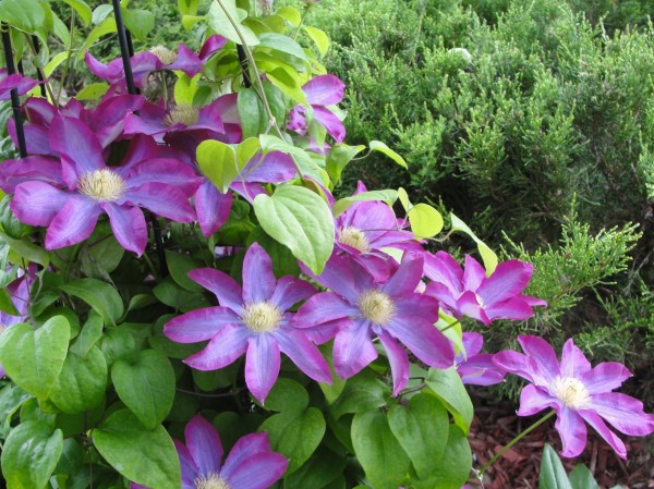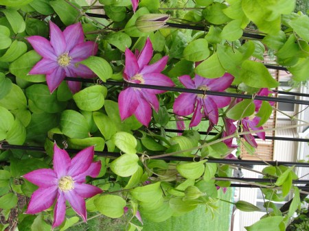 铁线莲,养了第3年,开了有5,60朵。网上有同学反映难养,我觉得只要作好了防兔工作,一切就OK了