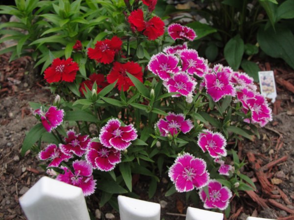 Dianthus, 没查到对应的中文名称,前后院共有6丛,是去年种的,它们虽然属于一年生的植物,但在某些地方是可以过冬的。去年深秋整理花园时,我特意留了根,今年春天果然像长年生植物一样又发芽了,并开了3种不同颜色的花。其中粉红色的称为“中国粉”(china pink)