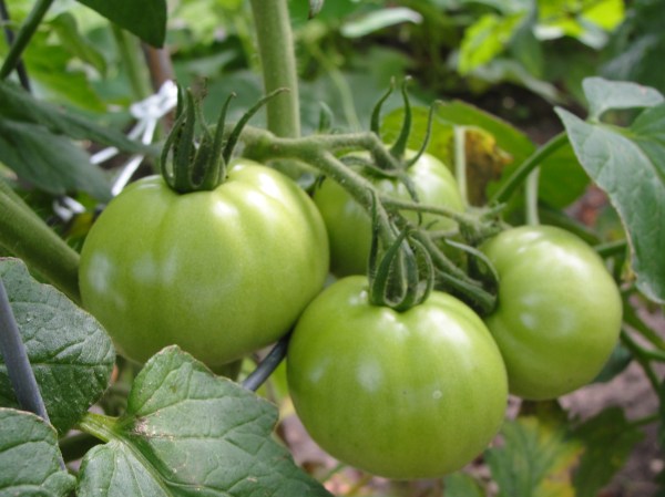 番茄4株3个品种,2种大的,一种是樱桃小丸子,都还属于青涩阶段。