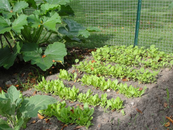 在大白菜收成过后(6月),又撒了一把小罗卜和莴苣种子,密密麻麻出了一片,要间苗了。还有茄子3株,丝瓜4株,目前都还在努力成长之中,以后有点姿色时再上照。