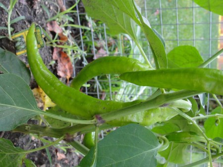 意大利西葫芦2株,这个需要异花授粉,前期雌雄花期不遇,很多小瓜牺牲了,看来收成不如去年,不过也有4根收进了。