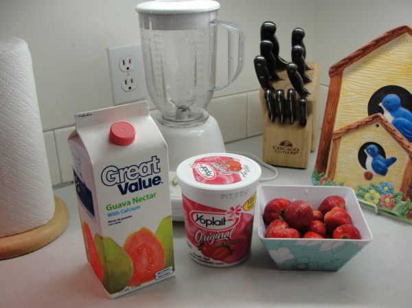 材料:草莓一碗,酸奶,水果饮料。家用搅拌机一台