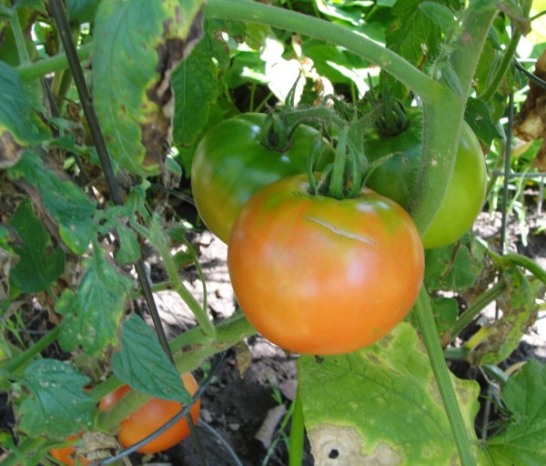 今年番茄由于成了白尾鹿的口中餐而惨遭滑铁卢,往年种4株番茄(3大1小)多得都吃不完,最后都要速冻在冰箱里留着冬天吃,今年樱桃小番茄收了2把,大番茄目前只收获一个,好在幸存的绿番茄开始陆续转红了。