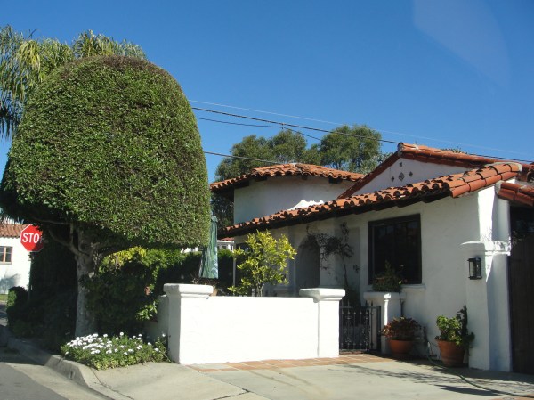 小院人家,南加州的很多民宅保留了西班牙/墨西哥的建筑风格,以红瓦白墙或黄墙为特色。