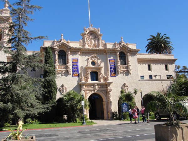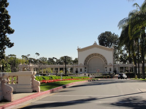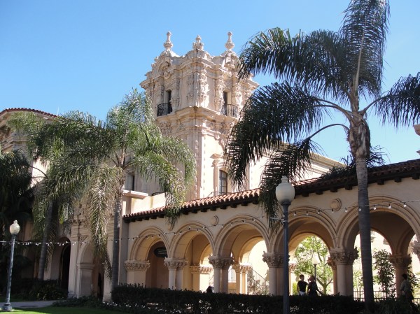 Casa de Balboa, 这组建筑包括圣地亚哥历史博物馆和研究图书馆。拱形长廊也是西班牙等南欧的建筑特色,在加州很常见。广州开埠后受其影响,街边也有这种建筑风格,被称为骑楼。